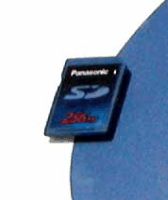 | 左:松下電器AVC社副社長 大坪文雄氏 右:本年度中に発売となる256MBのSDメモリーカード |