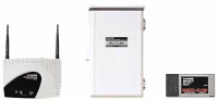 | 左から:無線LANアクセスポイント付ケーブルモデム(屋内用)、 無線LANアクセスポイント付ケーブルモデム(屋外(内)用)、 無線LANカード、無線LAN平面アンテナ、 無線LAN指向性アンテナ |