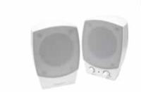 【SPEC】●実効出力: 1.5 Watts RMS / Channel ●周波数特性: 80Hz - 20kHz ●スピーカー:バスレフ型フルレンジステレオ防磁スピーカー パワースイッチとボリュームコントロール(右スピーカー) 緑色パワーLEDを装備(右スピーカー) 左右のスピーカー同士の接続ケーブル、及びオーディオ入力ケーブルはボディにビルトイン ●外形寸法: 95W x 102D x 133Hmm ●質量: 0.6kg ●パッケージ内容 :左右スピーカー1組 ビルトインスピーカーケーブル(ステレオミニプラグ) 専用AC電源アダプター ユーザー登録書/保証書
