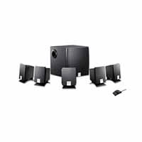 | Sound Blaster Live! 5.1(左)は、Creative INSPiRE 5.1 5300スピーカー(右)と組み合わせれば、ドルビーデジタル(ソフトウェアデコード)5.1 chホームシアターを楽しむこともできる |