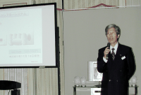| <左>同社の今後の計画について語る、オーディオ事業部 副事業部長 益田安夫氏 <右>まだ試作機段階の1ビット・フルデジタルマルチチャンネル再生システム |