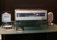 | DVDレコーダー。左隅にブルーレーザー対応のディスクも(左)、マイクロMV方式のDCR-IP7(右) |