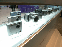 同ブースにはフジフィルム歴代製品がズラッとガラスケースに並べられているのが壮観だった。(伊藤竜太)