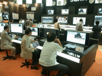 TVMLという番組台本作成用言語の紹介コーナーもあり、「TVML」プレイヤーというプログラムを使って、接続されたパソコンで操作して番組作成作業を体験できる。エンドユーザーが普段触れることのない世界だが、何気なく見ている番組さ製作される過程を少しだけ垣間見られるのが面白い。