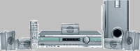 【SPEC】●出力: 40W×6(EIAJ 6Ω) ●使用スピーカー サブウーファー:16cmコーン型 サテライト:5cmフルレンジ ●入出力端子 コンポジットビデオ:入力3/出力2 Sビデオ:入力3/出力2 コンポーネントビデオ:出力1 音声(アナログ):入力3/出力1 オプティカル(デジタル):入力2/出力1 コアキシャル(デジタル):入力1 ●再生可能メディア: DVD-VIDEO、CD-DA、VCD、CD-R/RW、MP3、DVD-R(ビデオフォーマット) ●FM受信周波数範囲: 76MHz〜90MHz ●AM受信周波数範囲: 531kHz〜1629kHz ●最大外形寸法:本体440W×93H×410Dmm サテライトスピーカー70W×125H×108Dmm サブウーファー175W×310H×295Dmm ●質量: 本体約8.5kg サテライトスピーカー フロント/L/R/センター:約0.48kg/1本 リア:約0.36kg サブウーファー約4.9kg
