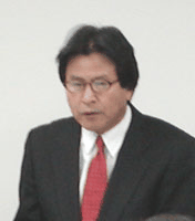 | 選考会にあたっての挨拶をする、「ビジュアルグランプリ2002」主催の音元出版社長・和田光征 |