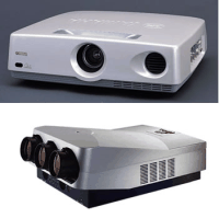 | <左>パナソニックの液晶プロジェクター「TH-AE100」 <右上>ヤマハのDLPプロジェクター「DPX-1」<右下>バルコの3管式プロジェクター「Cine Max」 |