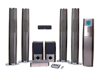 | ナカミチの美的システム「サウンドスペースシリーズ」のホームシアターサウンド最高峰『SoundSpace−21』(左)とプラスビジョンの高性能プロジェクター“Piano”(右)を体験できる! |