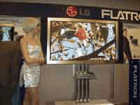 LGブランドのPDPは既に本国の韓国で高い売り上げを残しており、今後は日本国内でも大々的にPDPのプロモーションを展開していく予定だ。そのプロモーション活動の目玉になるのが60インチの大型プラズマディスプレイ。本発表会においては試作品が公開された。そのXGAパネルの大画面の迫力は圧倒的なものであった。LGブランドのPDPの日本における発売予定は、3サイズの製品ともに2002年6月頃を予定している。