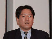 | 左:ビジー・ビーの牟田口 氏 右:発表会では「BB-Station」のコンテンツ・デモが披露された |