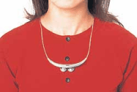 「SE−CN50−S」は、ヘッドホンとして使用していない時には、左右のユニットを襟元でつなぎ、ネックレスのような首元のアクセサリーとして身につける事ができる。シルバー仕上げのシンプルなデザインですので、女性だけでなく、男性にも抵抗なく使用できるものだ。