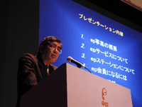 | (左)イーピー事業について説明する戸田長作代表取締役。(右)番組紹介のため著名な芸能人がゲスト出演 |