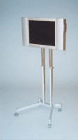 プラズマと違って液晶は、小さく軽く、移動性の高いのが特徴。キッチンで見たり、ベッドルームにおいたりといったテレビの使い方ができる、キャスターつきのスタンドだ。画面の高さが約77?m〜1102センチで上下できるのはもちろん。上下のチルト機構で手前に7度、後ろに2度調節が可能だ。