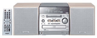 【SPEC】●受信周波数:FM 76〜108MHz(TV1〜3ch)、AM 531〜1629kHz ●タイマー:オンタイマー(任意に設定可)/スリープタイマー(5分単位で最大320分まで設定可) ●アンプ定格主鶴力:10W+10W (1kHz,6オーム,10%、EIAJ) ●対応ディスク:DVD VIDEOディスク、コンパクトディスク(CD-DA、CD-R/RW、ビデオCD、MP3-CD)、MDディスク ●入出力端子:音声入力、音声出力、映像出力、光デジタル出力、スーパーウーハー出力、スピーカー出力、ヘッドホン出力 ●消費電力:30W ●スピーカー:2ウエイバスレフタイプ ウーハー10cmコーン型、ツイーター4cmコーン型(防磁型) ●最大外形寸法:本体…170W×169H×217.5Dmm スピーカー(1台)…150W×169H×213Dmm ●質量:本体…3.1kg スピーカー(1台)…1.7kg