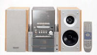 【SPEC】●電源:AC100V、50/60Hz ●消費電力:50W ●外形寸法:179W×241H×374Dmm ●質量:アンプ部約6.0kg ●アンプ部実用最大出力:合計36W ●再生メディア:CD、MD、カセットデッキ ●スピーカー部形式:2ウェイスピーカーシステム