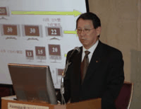 | 会場のシャープ株式会社AVシステム事業本部長常務取締役 濱野氏 |