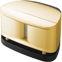 リボン型のボディは回折の少ないラウンドフォルムを採用。振動板により放射される波面が空間にスムーズに放射され、より自然で広がりのある音場ができる。ボディーケースはインテリア性に優れ、かつ共振しにくい高剛性のアルミダイキャストを使い、真鍮製のスパイク付き木製ベースを付属して手持ちのスピーカーシステムやインテリアに自然に溶け込むデザインが魅力だ。