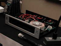 HOME > ニュース > ニューヨーク “THE HOME ENTERTAINMENT SHOW”フォトレポート(6) ニューヨーク “THE HOME ENTERTAINMENT SHOW”フォトレポート(6) 公開日 2002/06/06 12:07 ●人だかりの最も多かったのがウォーカー・オーディオというアナログ・プレーヤーで、やはりアメリカ人もアナログが好きなんだと思わざるを得なかった。それと音は聴けなかったが、PSオーディオの電源システムが近々輸入される運びになっている。期待される製品である。(井上千岳) 写真左:PSオーディオ 写真右:ガマットが出品した巨大なアンプ この記事をシェアする 関連リンク ニュ-ヨ-ク “THE・SHOW”フォトレポ-ト(1)にもどる ニュ-ヨ-ク “THE・SHOW”フォトレポ-ト(5)にもどる