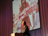 | スカパー!2のサービス概要を説明する重村一代表取締役副社長 |