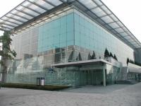| (左)合意の握手をする松下電器の専務取締役田中宰氏と吉本興業鰍フ代表取締役社長林裕章氏。(右)パナソニックセンター |