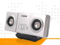 本製品はMP3プレーヤー、ボイスレコーダー、ポータブルストレージデバイスが一体化した高音質なコンパクトスピーカーだ。ビットレート32k〜320kbpsをサポートし、お気に入りのMP3ミュージックをオンボード32MBメモリーに保存が可能である。さらに32MBオンボードに加え、128MBスマートメディアをサポートし、増設することによってより多くの曲を保存できるようになる。データやグラフィックスファイルの保存にも対応する。内蔵マイクで最長2時間までの録音も楽しめる。