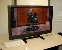 本機にて3D映像を楽しめるコンテンツとしては、現在のところはPCにつないで、予め作成した3Dコンテンツの再生のみである。同社では将来的にはテレビの放送コンテンツも立体映像で楽しめるような仕様も考えたいということであるが、そのためには放送コンテンツそのものに多視点の映像を伝送させる技術が今よりも発展する必要があると述べている。