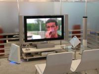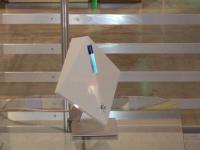 写真は、参考出品ながら注目を集めていたホームシアターシステム。何と、リアSPの信号を無線で飛ばし、スピーカーケーブルの接続が不要となっている。フロントLRのスピーカーにそれぞれデジタル赤外線の送信部があり、リアLRの受光部で信号を受け取る。フロントの両側から信号を送るため、片方が塞がっていても信号を伝送できるという。