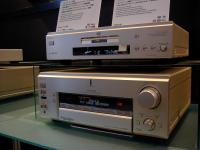 「エレクトロニクス オン サービス ゾーン」の「オーディオ&DVD」コーナーでは、同社のSACD/DVDプレーヤーのフラグシップモデル「DVP-S9000ES」の次世代機と思われる製品が参考展示されていた。本機は14bit108Mhzノイズ・シェイプド・ビデオD/Aコンバーターを搭載、SACDマルチ再生にも対応し、DVD-RWの再生も可能だ。価格、発売時期に関しては、今のところ一切未定であるということだ。また本機のとなりには兄弟機となるハイCPモデルのSACD/DVDプレーヤーの新製品が、こちらも参考出品のかたちで展示されてあった。本機は12bit108MHzビデオD/Aコンバーターを搭載し、SACDマルチ再生に対応する。