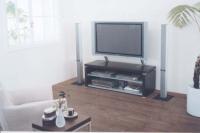 プラズマディスプレイを意識した奥行き44cmのローボードや、ガラス戸つきのキャビネット、リア用に高さの変えられるスピーカースタンド等9点のラインナップを揃えている。