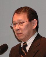 発表会の壇上には同社の専務取締役 濱野稔重氏が立ち、新シリーズを取り巻く状況を説明した。同氏は、DVDやBSデジタルの普及が拡大したことにより、今まで以上に高画質に対するニーズが高まっており、またユーザーのテレビ総視聴時間が増え、テレビの省消費電力化や製品寿命の重要度がこれまで以上に増してきたとし、今回の新機種はこの2つの要件を満たしていると語った。