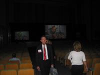 メインオーディトリウムと呼ばれるそのプレゼンテーション会場は、東京有楽町のマリオン日劇ほど広く、客席数で言うと500席はあるに違いない。櫓を組んで、Q-XGAのDLA-QX1G、DLA-SX21、9月発売のホームシアターファイル誌で紹介したS-XGAのDLA-G150CLの3機種でシュートアウトを行っていた。