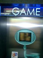その後、部品展示コーナーで、シャープのめがねなし、立体ディスプレイにぶつかる。視差クロストークを利用した8.4インチ液晶もの。もともと、ゲームは3Dに作られているので、画素数が半分になったものを2枚一度に一つのディスプレイに投射。実写ものは2台のカメラで撮らなければならない(これは耳のStereoと同じ原理)ので、なかなかソフトは展示できないのだが、今回はもう一つ電子辞書ものをデモ。