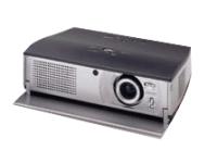 本機は、約157万画素(964x544画素x3枚)の16:9高精細ワイド液晶パネルが搭載され、レンズ側には上下左右レンズシフト機能とよばれるダイヤルを装備しています。これは、プロジェクターを動かすことなく、レンズの向きを上下左右に動かすことにより、適切な画面位置を調節できるというものです。