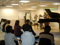 | 銘ピアニスト・塚原小太郎氏(左)を中心としたトリオのプレイに来場者たちは酔いしれた |
