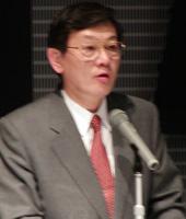 | <左>松下電器産業(株)AVC社社長 大坪文雄常務 <右>会場内では大スクリーンでセミナーが行われてる |