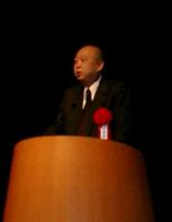 【写真左】エミー賞受賞のお話も交えつつ、2007年頃の視聴者保護を考慮し、2011年まではBSアナログ放送を続ける必要性について演説するNHK海老沢会長(総務省の放送政策研で調整がついたという新聞報道も)。