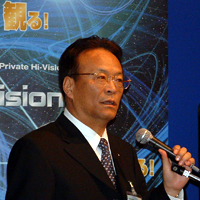 「2002年からデジタル化の大きなうねりが起きており、本年、PDPは昨年の約2倍、DVDは120%くらいの需要が予想されます。2月1日にはテレビ放送50周年を迎え、年末には地上波デジタル放送も開始されます。日本ビクターとしては、この様な流れに合わせ、HDストレージやネットワークAVシステムなどにも力を入れていきたいと考えています。本日発表する『GR-HD1』は、「録る・観る・創る」という3つの楽しみ方を実現した製品になっていると思います。」