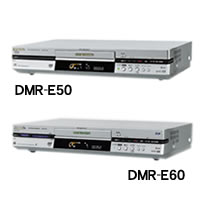 「DMR-E50」はシリーズの中で一番の低価格モデルとなる、エントリー向けDVDレコーダーである。DVD-RAMディスクの特長を活かした「追っかけ再生」機能を搭載。頭出しなしでもすぐに録画開始でき、巻き戻しなしですぐに再生できる「一発録画再生」、音声付きで1.3倍速の再生を可能にした「早見再生」などを楽しめる。プログレッシブ再生にも対応している。