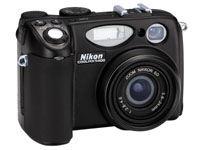 ●有効画素数:5.1 メガピクセル ●撮像素子:1/1.8 型CCD(総画素数5.26 メガピクセル) ●レンズ:4倍ズームニッコールレンズ、f=5.8〜24mm(35mm判換算:28〜116mm相当)F2.8〜F4.6(8群9枚:非球面2枚、ED1枚) ●撮影距離:レンズ前約50cm〜∞[マクロモード・マニュアルフォーカス時レンズ前約1cm〜∞] ●記録媒体:コンパクトフラッシュカード(Type I/II)、マイクロドライブ(1GB) ●撮像感度:ISO50 相当、感度切り換え可能(オート、ISO50、ISO100、ISO200、ISO400 相当) ●インターフェース:USB(リモートコードMC-EU1<別売>対応)、音声付きビデオ出力(NTSC、PAL から選択可能) ●入出力端子DC 入力端子、オーディオビデオ(AV)出力端子、デジタル端子(USB) ●連続撮影時間:約110 分*(Li-ion リチャージャブルバッテリーEN-EL1 使用、液晶モニタ使用時) ●外形寸法:約108W×73H×69D mm ●質量:約320g(バッテリー、記録媒体を除く)