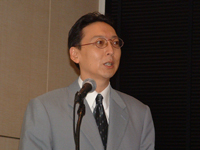 発表会で壇上に立ったのは広報室室長の鴨志田憲一郎氏。同氏は冒頭に、「DVDソフトの充実や、地上波デジタル放送が今年より開始されることなどにより、マルチチャンネルがより身近になってきました。これによりマニアだけでなく一般の方もホームシアターを楽しむようになってきています。今回の新製品も“いい音・簡単・スタイリッシュ”というシネマステーションの基本コンセプトのもと、より多くのひとに使って頂けるような製品を開発しました。」と語った。