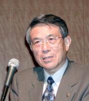 | <左>4K2Kパネルを搭載したD-ILAプロジェクター <右>日本ビクター(株)専務取締役の山口南海夫氏 |