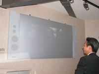 また80インチのスクリーンの、左右と裏にスピーカーを埋め込んだ「スピーカー付スクリーン」もデモ展示されていた。