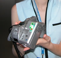 サムスンでは思わず心躍らされるような、先進性溢れるAVエンタテインメント機器が紹介されている。デジタルカメラとDVカムコーダーを一体化した「"DuoCam" VP-D5000i」は、ボディのレンズ部分が回転式になっており、両端に静止画撮影用、動画撮影用のレンズが組み込まれているユニークな製品だ。欧州市場にて1500ユーロの価格で登場する。手のひらに収まるコンパクトサイズの「ITCAM-5」も、静止画・動画撮影に加え、1.5GBのハードディスクを搭載することにより、MP3プレーヤー、外付けストレージデバイスとしても活用ができる。メモリースティックProにも対応。