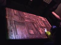 十日町本町通り沿いにある、新潟でも三軒しか残っていないという木造三階建ての古い商家。窓を閉めて暗くした二階の日本間におかれた螺鈿入りの4つの和机には、十日町の通りや、そこにいきかう人々の映像が映し出される。やがて白い雪のような米が、人々のイメージを消してゆく。部屋の奥には、米が円錐形に盛り上げられ、それをさするように、手の映像が映される。有名な米どころでもあるこの地方の暮らしのイメージが、しっとりと美しく投影されていた。この作品は絶対日本人が作ったのだと思ったら、作家は中国の人だ。自分たちの文化は自分達しかわからないだろうという思い込みがあったことに気付く体験だった。