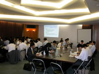 | 左)物理フォーマットグループ・チェアマンを務めるTDK(株)小林英男氏 右)ラウンドロビンテスト定期全体会議が開催された |