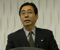 | 左)プラズマテレビ「EXE」シリーズの新製品 右)日本ビクター(株)藤崎陽一氏 |