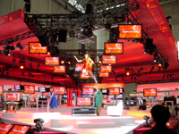 テレビシリーズ「WOOO」の全ラインナップが展示ブースに所狭しと並ぶ。またDVDディスクを採用したビデオカメラ「DZ-MV380/350」を手にとってその魅力を確かめることができる。ホームシアター用液晶プロジェクター「WOOO PJ-TX10J」の映像が楽しめる視聴特設ブースも設置。レンズシフトを採用し、高い自由度を誇る本機の魅力も様々な設置方法の提案なども展開しながら紹介されている。