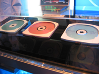 2層50GBのディスクは、HD映像を約4.5時間記録することができ、ソニーの現行モデルで映画1本の録画に若干の不安を感じていた、約2時間という制限をクリアする。一風変わったそのスタイルは、中味のディスクレーベル面が開放されたスタイルの新カートリッジで、メリットはより薄型化が可能で、レーベルデザインに差別化ができたり、製造コストも下げられるという。そういった背景から、一層式、二層式ともに各社ともこのカートリッジに切り替わっていくだろうとのこと。