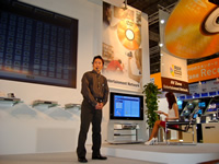 ブース前面では解説員によるDVD-RAMディスクを使ったデジタルエンターテインメントの魅力をイベント展示によりわかりやすく紹介している。DVD-RAMに直接記録が可能なビデオカメラで撮影した映像を、DVD-RAMに対応するDVDレコーダーやドライブで編集し、大画面ディスプレイでたのしむという一連の流れを実演紹介する。また会場ではDVD-RAMディスクの全種類が並び、最新のレコーダー、ドライブを一同に展示している。