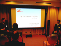 (株)オーエスは、1953年に大阪府にて創業した老舗スクリーンメーカーである。映画館や文教関連市場における映写用スクリーンの販売をベースに、東京、横浜、埼玉、名古屋、仙台、広島、福岡、札幌、金沢に営業所を拡張し、2000年にはコンシューマーマーケットを担当する(株)ホームシアターを設立した。現在はホームシアター市場にいくつもの画期的な製品を発表し、2002年には香港に販売会社OSI、中国広州に生産工場を建設している。
